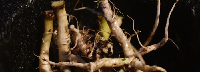 Place the roots in a blender or a mortar and bash until the fibrous roots have broken and you are left with a fragrant paste. Mix in the vinegar, sugar, salt and water until you achieve the thickness you want.