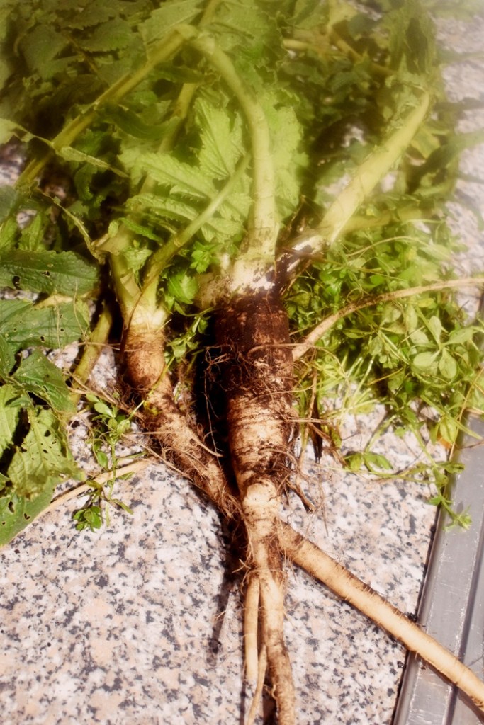 So when I found some lovely wild radish specimens on my walk today (seriously look at the size of those roots!!), I knew exactly what I wanted to do with them- Chinese-style pickled wild radish roots.