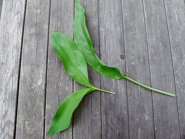 Well, the first thing to think about is the season. Wild garlic leaves are out in early to mid spring and they will have flowered by late spring, at least in the UK. Not a lot is out at that time of the year. Wild garlic also tends to grow in woodland, sometimes completely covering the forest floor. Some plants you might confuse it with are Italian lords and ladies and lily of the valley. But Italian Lords and Ladies have two pointy ends at the bottom of the leaf whereas wild garlic is lanceolate, and lily of the valley tends to grow two leaves from the same stem whereas wild garlic always only grows one leaf per stem. If in doubt, leave it out as both Italian lords and ladies and lily of the valley are toxic. The last identification criterion is that neither lords and ladies or lily of the valley smell like garlic, whereas wild garlic’s smell is unmistakable.